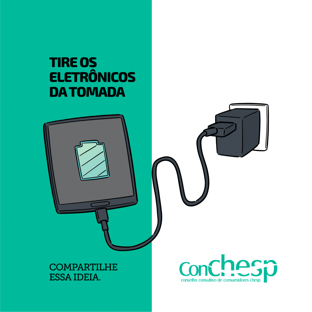 A mudança de hábitos simples te ajuda a diminuir o gasto de energia e o valor da sua conta! Uma sugestão rápida e que pouca gente faz é retirar os eletrônicos da tomada quando não estiver usando.