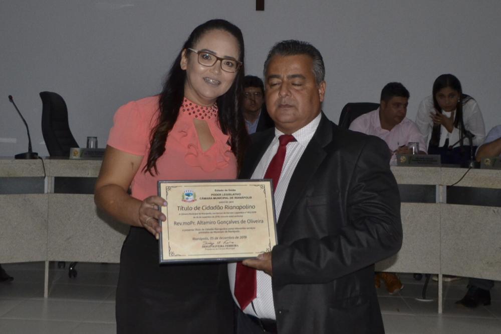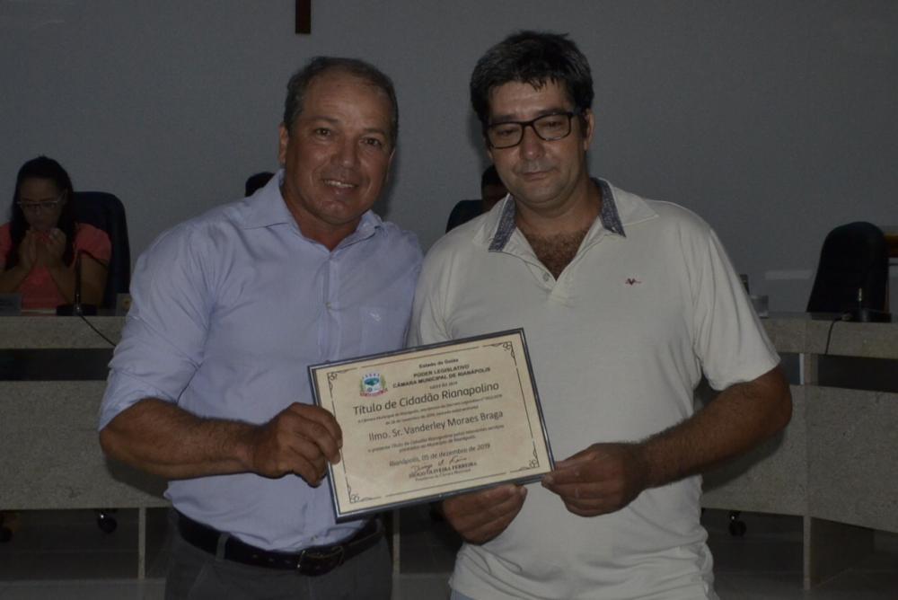CidadaniaA Câmara Municipal de Rianápolis realiza Sessão Solene e faz entrega de “Título de Cidadão Rianapolino” e condecoração de “ Honra ao Mérito” à cidadãos que tem contribuído com o desenvolvimento da cidade. Foram destaques: