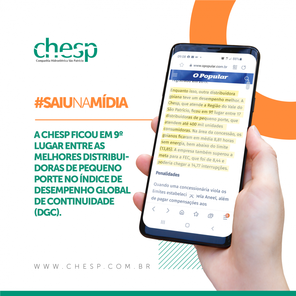 A matéria destacou o bom desempenho entre as distribuidoras de pequeno porte. Na classificação geral, a CHESP ficou em 9º lugar dentre 17 distribuidoras.