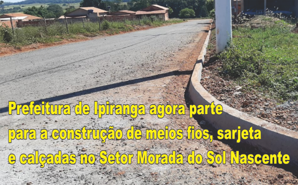 Com determinação em pavimentar toda a cidade de Ipiranga de Goiás, o Prefeito Alex Queiroz direciona seus trabalhos na finalização dos serviços no Bairro Morada do Sol Nascente. Já foi realizado a pavimentação e agora inícia a construção de meios fios, sarjetas e calçadas nas ruas do setor.
