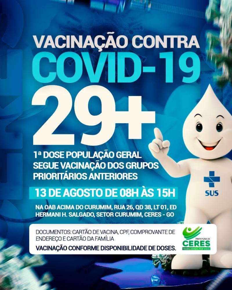Ceres - Vacinação contra Covid-19 População Geral 29+