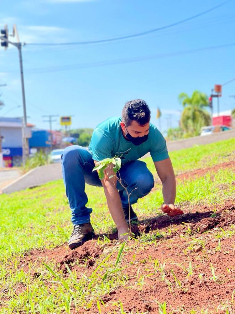 Com o início do período chuvoso, a Secretaria Municipal de Meio Ambiente e Saneamento inícia os trabalhos de plantio e replantio de mudas de árvores nos canteiros centrais e áreas verdes de Ceres. A atividade tem por objetivo garantir a arborização municipal, muito importante para a qualidade ambiental e o bem-estar social. Somente na última quinta-feira (21), foram plantadas 38 mudas nos canteiros da cidade. Na imagem, o servidor da Prefeitura realizam o plantio no canteiro central da Avenida Brasil.