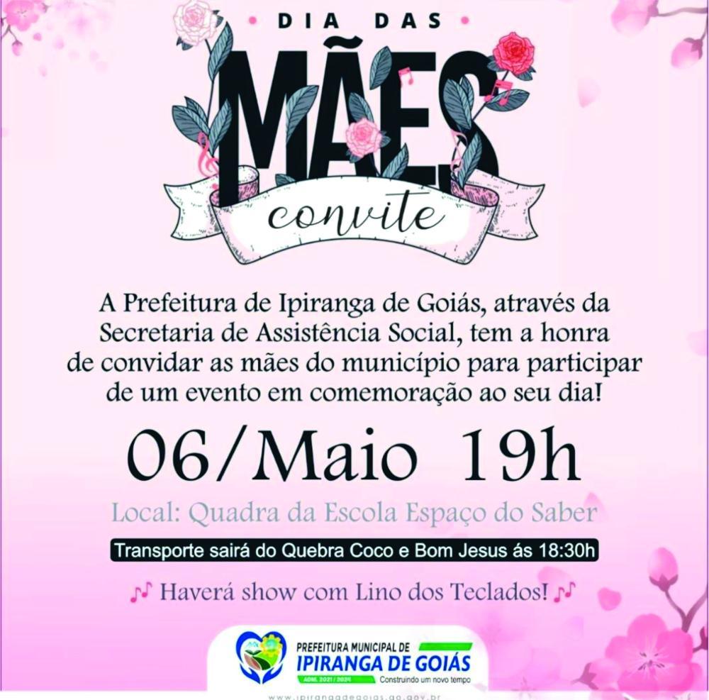 Tweet Ipiranga de Goiás - Dia das Mâes Comunicado NOTÍCIAS RELACIONADAS Palestra especial com Dra. Luciana Darrot, trazendo conhecimento e motivação para mulheres que desejam empreender, crescer e transformar suas realidades. Prefeitura de Rialma informa: Evento Mulher EmpreendedoraUm momento especial de inspiração,... Convite para a 1ª Feira do Agronegócio do Vale do São Patrício Convite para a 1ª Feira do Agronegócio do Vale do São Patrício O secretário de... Câmara Municipal de Ceres realiza a 1ª Sessão Ordinária do mês de março de 2026 Câmara Municipal de Ceres realiza a 1ª Sessão Ordinária do mês de março de... Ceres promove capacitação sobre cuidados com o pé diabético e recebe R$ 10 mil para fortalecer Atenção Básica Ceres promove capacitação sobre cuidados com o pé diabético e recebe R$ 10 mil para... Mais lidas ComunicadoComunicadoCidadaniaJustiçaMeio Ambiente Comunicado Rianápolis celebra o encerramento da 9ª Copa... Comunicado Ceres - Goiás informa: 24 Edital de Convocação Comunicado 6º EDITAL DE CONVOCAÇÃO – PROCESSO SELETIVO... ConCHESP realiza a primeira reunião de 2026 e... Visita institucional fortalece a saúde de Ceres Aluguel Social com Vagas em Ceres