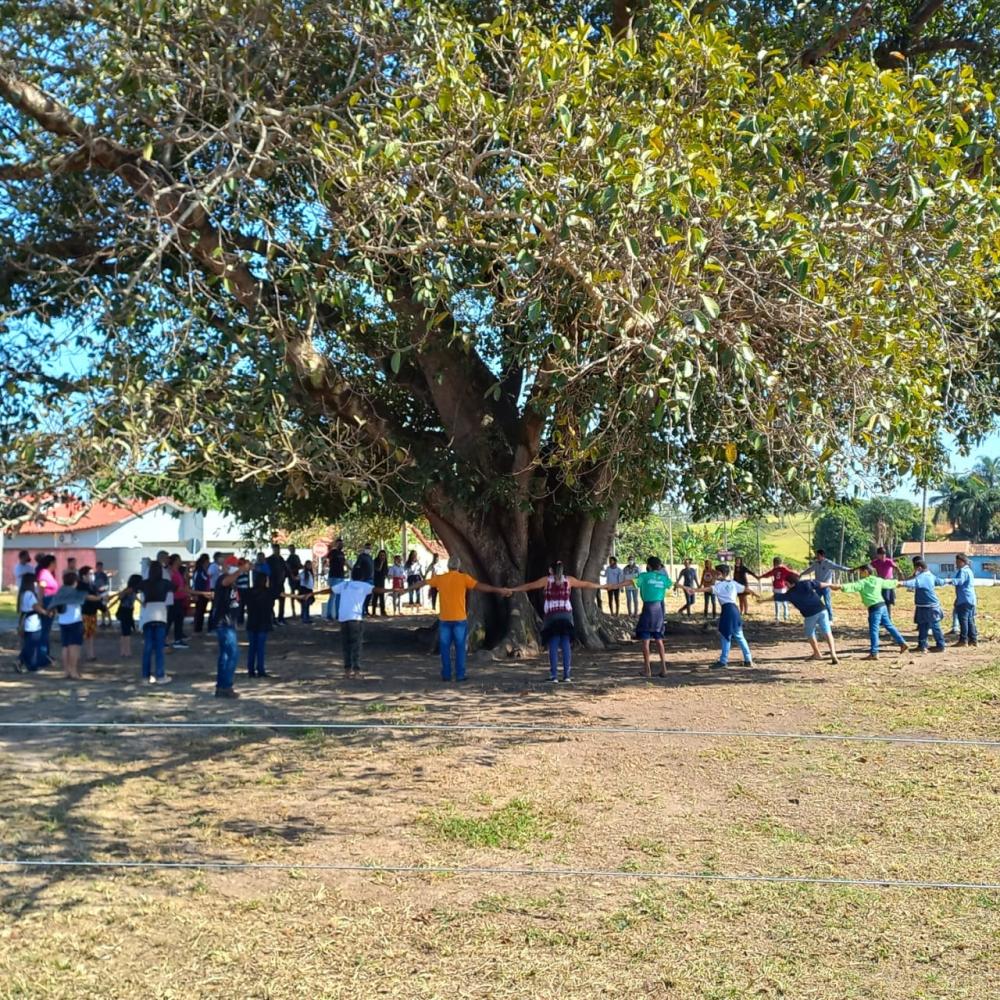 Trata-se de uma árvore “Ficus Doliaria”, popular Gameleira Branca, hoje pelo histórico prestado pelos moradores mais antigos, existir a mais de 100 anos. A árvore está localizada na antiga “Belém Brasília” estrada que cortava todo o Estado de Goiás. Ali abaixo da árvore, inúmeros causos. Moradia provisória de ciganos, viajantes, abrigo dos primeiros moradores e até sua sombra usada de abrigo aos trabalhadores de pequenas serrarias. Digam os moradores mais antigos do local, local que as crianças se ajuntavam, brincavam e estudavam na sua frondosa sombra.