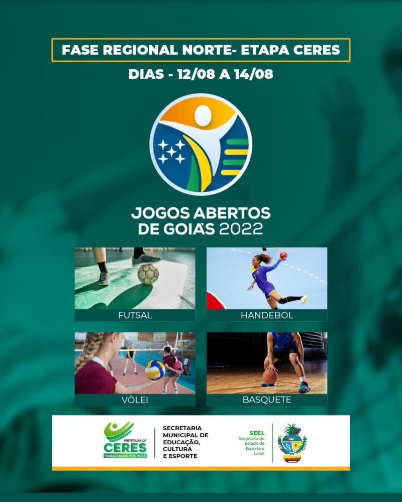 A cidade de Ceres sediará, de forma individual, a Fase Regional dos Jogos Abertos de Goiás em 2022. É a primeira vez que o município receberá todas as modalidades de jogos que incluem: Basquetebol, Futsal, Handebol e Vôlei de Praia. As partidas ocorrerão nos dias 12, 13 e 14 de agosto.