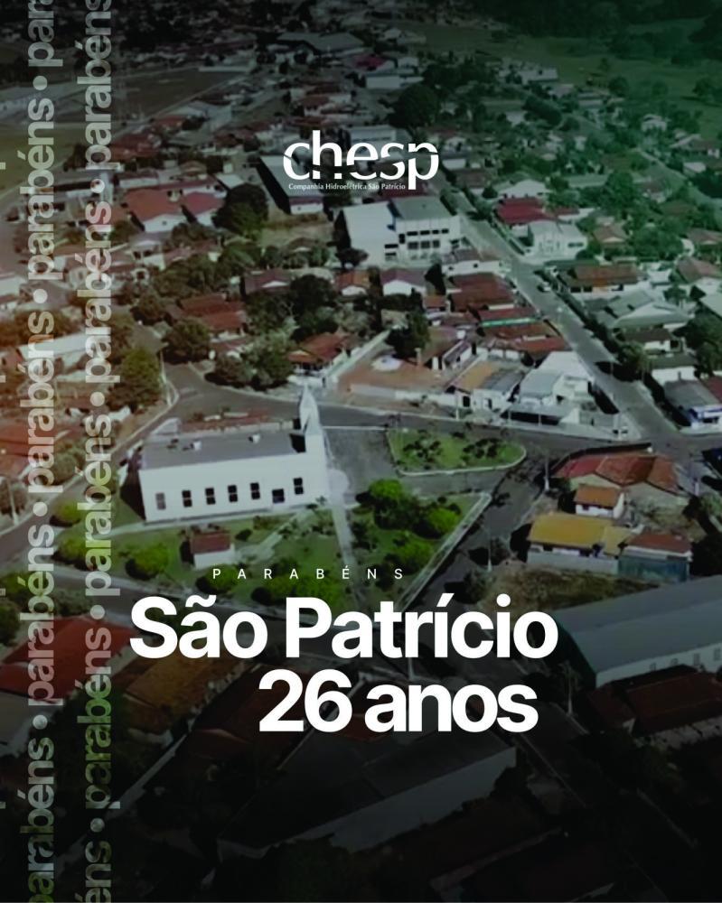 Hoje comemoramos mais um aniversário dessa cidade tão querida que é São Patrício. Graças ao esforço, dedicação e perseverança da sua população, São Patrício completa hoje 26 anos de muitas conquistas, desenvolvimento e vitórias!