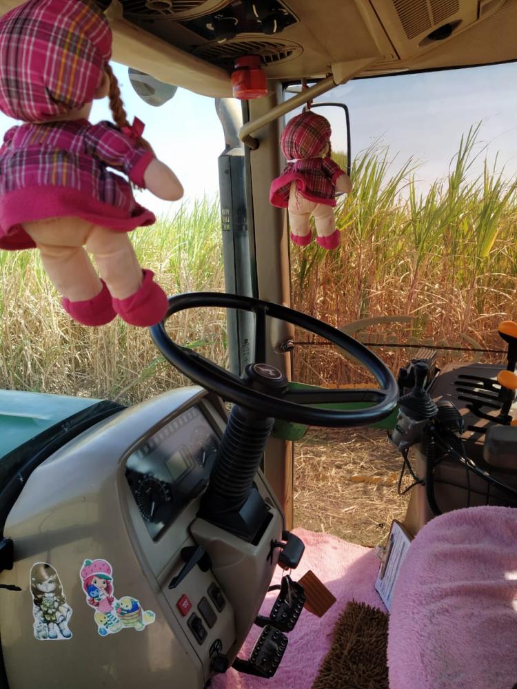 Para Vitor e a outra colega que compartilham o trator em turnos diferentes, Zildene sempre deixa o tapete, o cheirinho e, claro, as capas cor de rosa. “O vidro do trator está sempre muito limpo”, pontua.