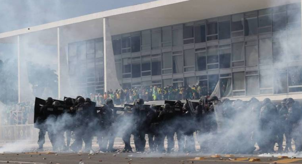 Diversos objetos foram arremessados por bolsonaristas terroristas para fora do Palácio do Planalto, a destruição foi total. Danificaram e destruíram a Galeria de fotos dos presidentes da República, o Palácio do Planalto, a Sala da primeira-dama, Janja; o Prédio do Supremo Tribunal ficaram com todos os vidros quebrados; O plenário do Supremo Tribunal com todos os bancos quebrados e jogados do local, tapetes molhados e danificados, cadeiras arrancadas e destruídas. Não pouparam nada, até as Obras de artes e móveis no Palácio Presidencial também todos destruídos. Nada em condições de serem aproveitados. Um estrago incalculável em todos os espaços invadidos.
