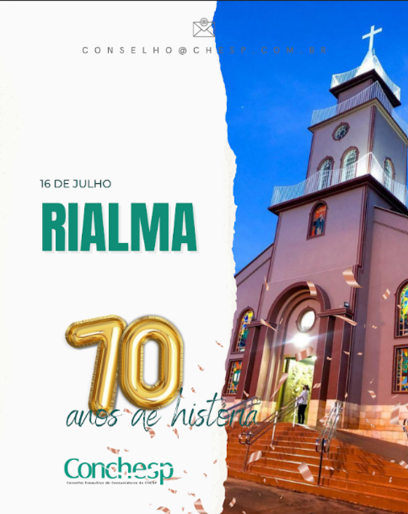 Parabéns a todos os munícipes de Rialma, 70 anos de história!