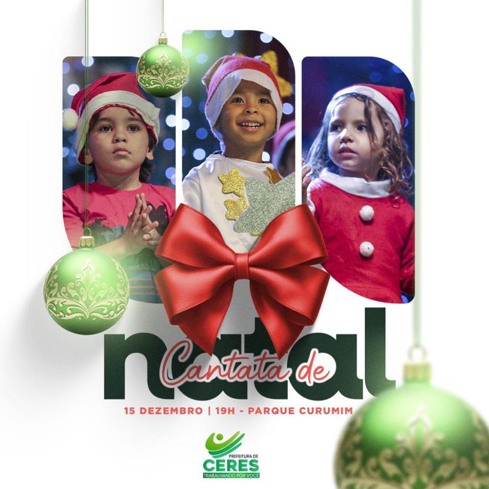 CidadaniaPara partilhar as alegrias e emoções do clima natalino, a Prefeitura de Ceres, através da Secretaria de Desenvolvimento Social convida toda família ceresina, para a Cantata de Natal, nesta sexta feira 15 de dezembro a partir das 19 horas no Parque Curumim. Teremos várias apresentações e a presença do Papai Noel. Venha celebrar conosco esse momento mágico do natal. Prefeitura de Ceres, trabalhando por você!