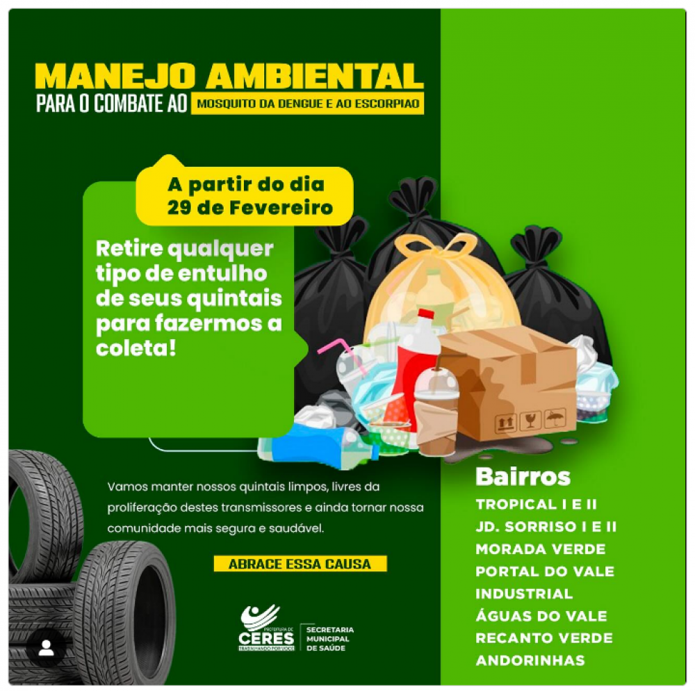 A Prefeitura de Ceres, por meio da Secretaria de Saúde e da Secretaria de Serviços Urbanos, tem uma mensagem importante para vocês!