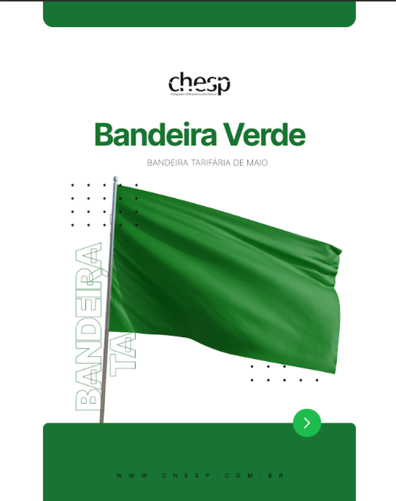 ComunicadoNeste mês de Maio a Bandeira tarifária é da cor: VERDE!
