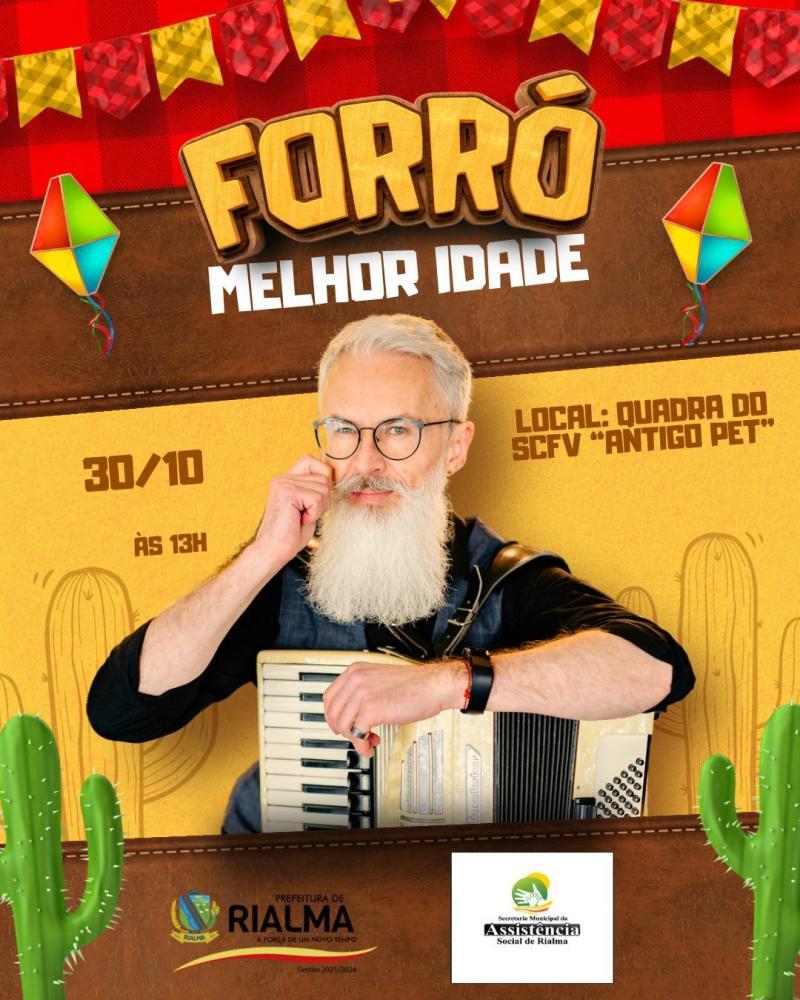 A Prefeitura Municipal de Rialma, por meio da Secretaria de Assistência Social, irá realizar nesta quarta-feira (30/10) mais uma edição do "Forró da Melhor Idade".