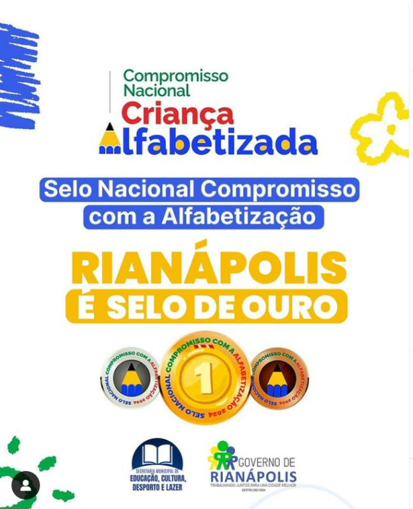 EducaçãoRianápolis conquista Selo de Ouro na Campanha Nacional de Alfabetização Infantil!