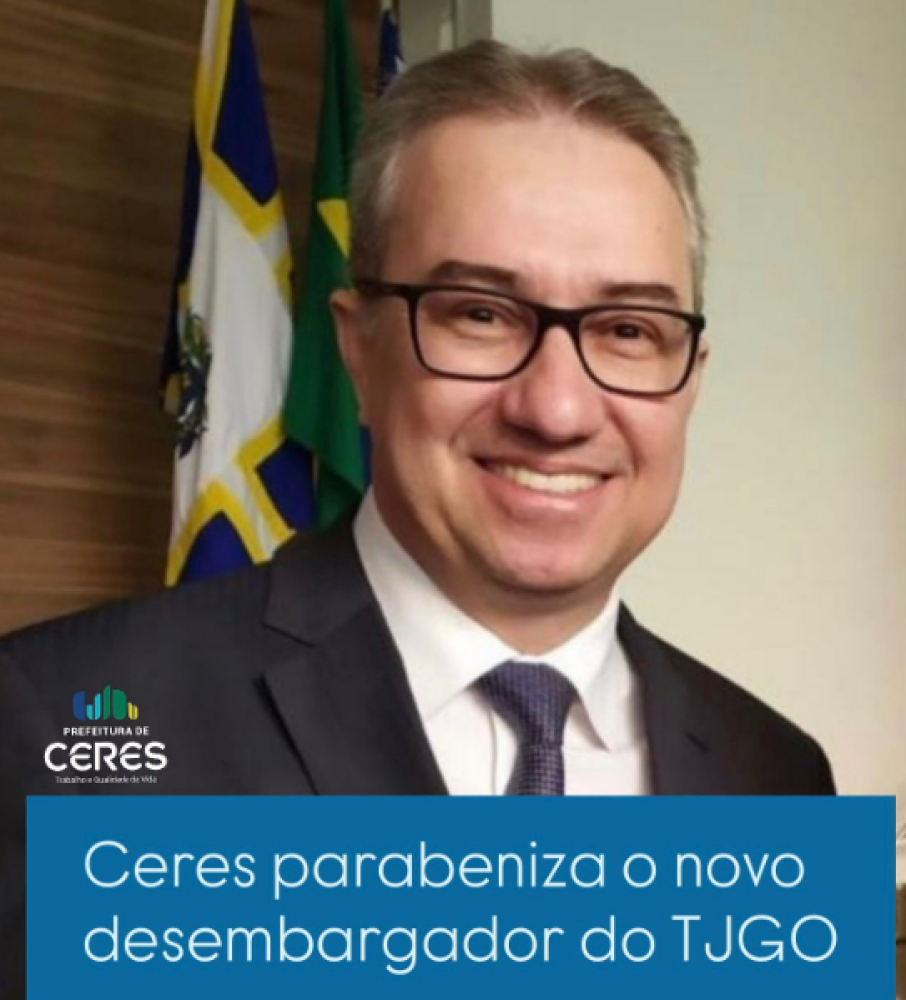 ComunicadoO prefeito Edmario de Castro Barbosa, o vice-prefeito Marcão e toda a comunidade ceresina parabenizam o advogado Augusto César Rocha Ventura pela nomeação ao cargo de desembargador do Tribunal de Justiça de Goiás, escolhida pelo governador Ronaldo Caiado, na vaga destinada ao quinto constitucional da advocacia.
