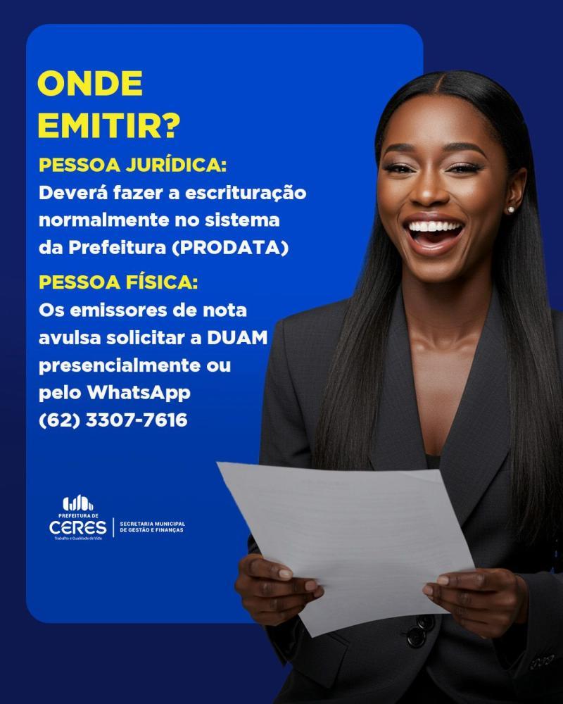 Pessoa Física (Nota Avulsa): entrar em contato com a equipe do Departamento de Arrecadação pelo WhatsApp (62) 3307-7616 ou comparecer presencialmente.