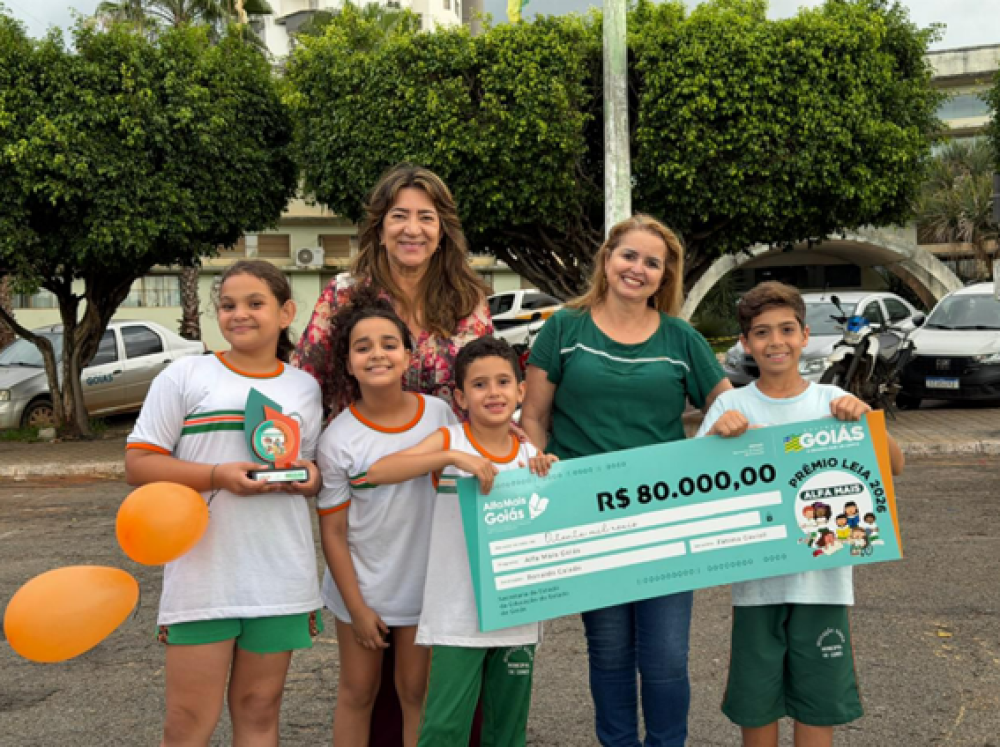 A Escola Municipal em Tempo Integral Pequeno Príncipe esteve em Goiânia para receber o Prêmio LEIA 2026, um reconhecimento às 150 escolas com melhores resultados na alfabetização em todo o Estado de Goiás.