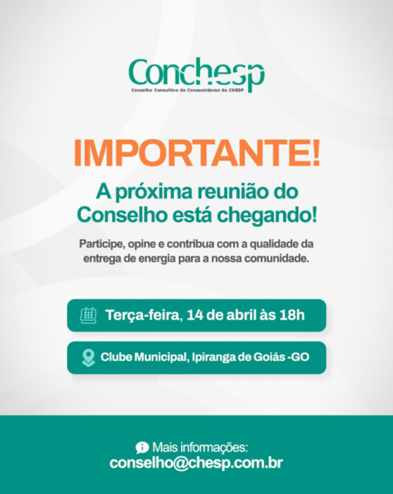 A próxima reunião do Conselho já tem data marcada, e a sua presença é muito importante. Este é um espaço aberto para diálogo, onde queremos ouvir você: relatar problemas, compartilhar sugestões e também elogios.
