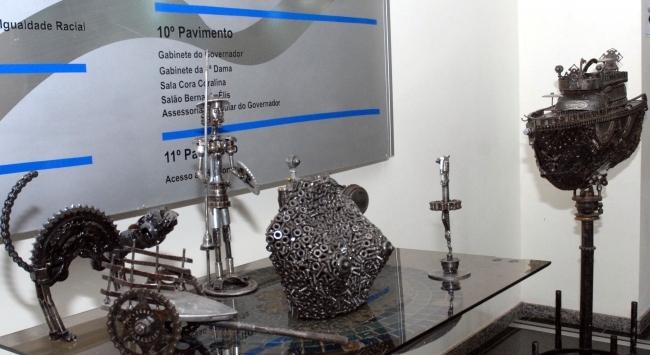 Inspirado nas mulheres, aficcionadas por sapatos, Zakeu criou scarpins com uma luminária antiga, chapa velha de portão, parte de um cinto e da engrenagem de um fusca, além da placa de computador. Zakeu faz questão de dizer que preza pela simetria em tudo o que faz. “Achei interessante o reaproveitamento desse material. Bem legal. Gostei bastante. Não imaginava que, com esse tipo de coisa, fosse possível fazer uma obra de arte”, comentou a funcionária pública, Andréa Silveira Brod. O trabalho também despertou a curiosidade da servidora Iara Mundim. “O material que ele usa é impressionante. Deve ser muito difícil porque cada peça tem muitos detalhes”, reconhece. Zakeu, que mora em Cidade Ocidental, no Entorno do Distrito Federal, começou a se encantar pelo mundo artístico aos oito anos. A exposição vai até a próxima sexta-feira, no PPLT, em horário comercial, e com entrada franca.